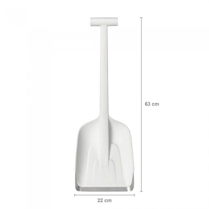 Компактная автомобильная лопатка для расчистки снега вокруг колёс. Литой стекловолоконный композит, алюминиевая кромка и Т-образная рукоять обеспечивают прочность и контроль. Размеры 220×630×105 мм, масса 520 г.