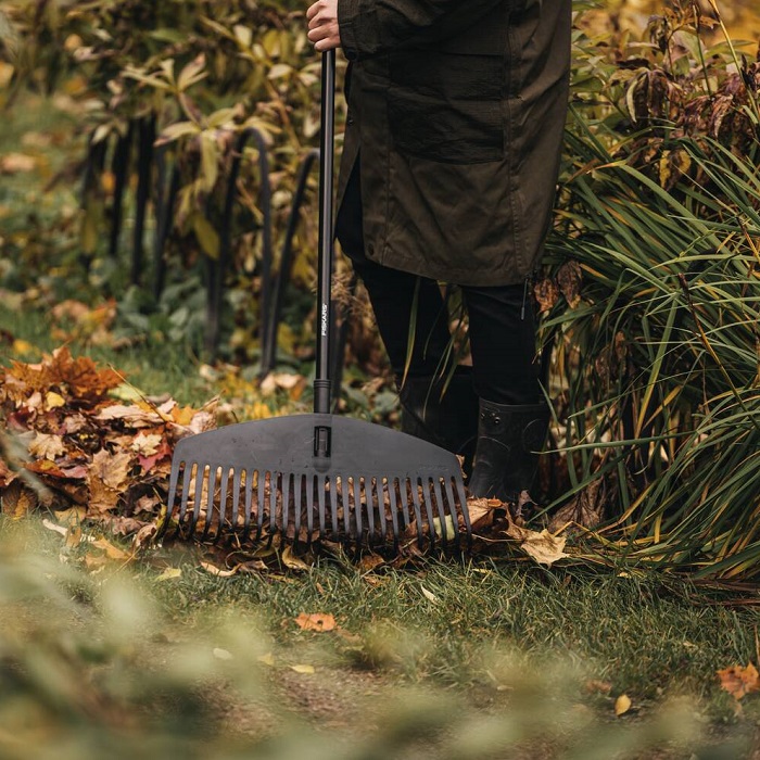 Грабли для листьев Fiskars Solid™ Leaf Rake L, 52 см (1014915) — это широкие веерные грабли для быстрого сбора листвы, хвои, мелких веточек и травяных остатков на газонах и дорожках. Плоская геометрия с прямыми кромками позволяет работать вдоль бордюров и в узких местах, а гибкие изогнутые зубья пружинят и меньше забиваются.
