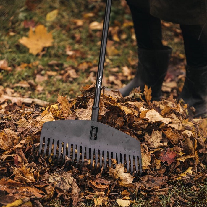 Грабли для листьев Fiskars Solid™ Leaf Rake M, 42 см (1063089) — это манёвренные веерные грабли для быстрой уборки листвы, хвои, мелких веточек и травяных остатков. Плоская геометрия с прямыми кромками помогает работать вдоль бордюров и под кустами, а гибкие изогнутые зубья пружинят и меньше забиваются в процессе работы.