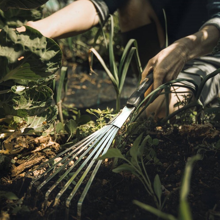 Веерная форма и 7 пружных зубьев — аккуратно между растениями.