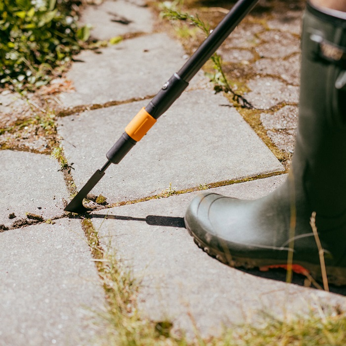 Fiskars QuikFit™ Patio Knife (1000687) — это насадка-скребок для системы QuikFit™ (КвікФіт), предназначенная для удаления травы, мха и сорняков из швов между плитами/брусчаткой, вдоль бордюров, в углах стен и на ступенях. Лезвие из закалённой борсодержащей стали выдерживает интенсивное шкребание и долго остаётся острым.