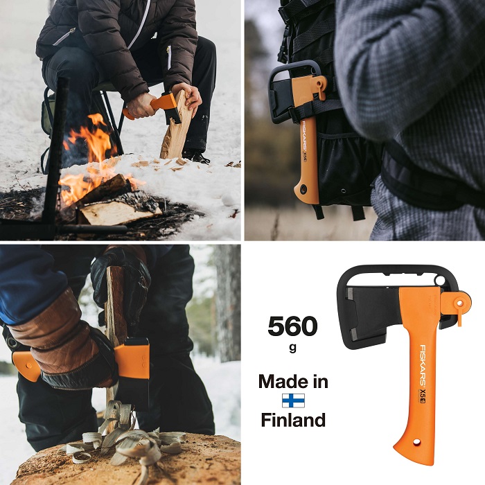 Топор X5 (XXS): длина около 22–23 см, лёгкий и прочный для растопки и мелких работ.