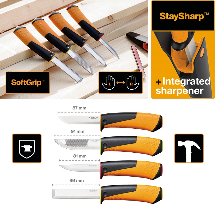 Универсальный нож Fiskars Heavy Duty с точилкой (арт. 1023619)