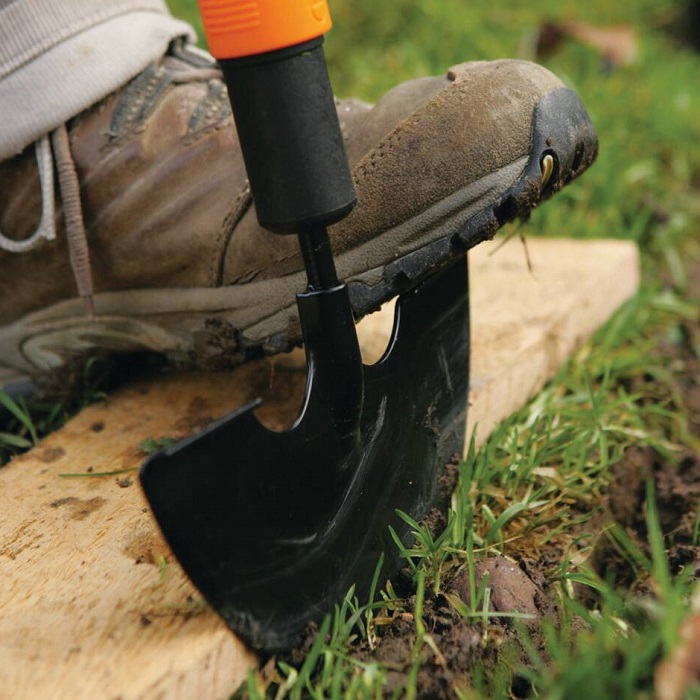 Плоский верх лезвия — удобно давить ногой и контролировать глубину.