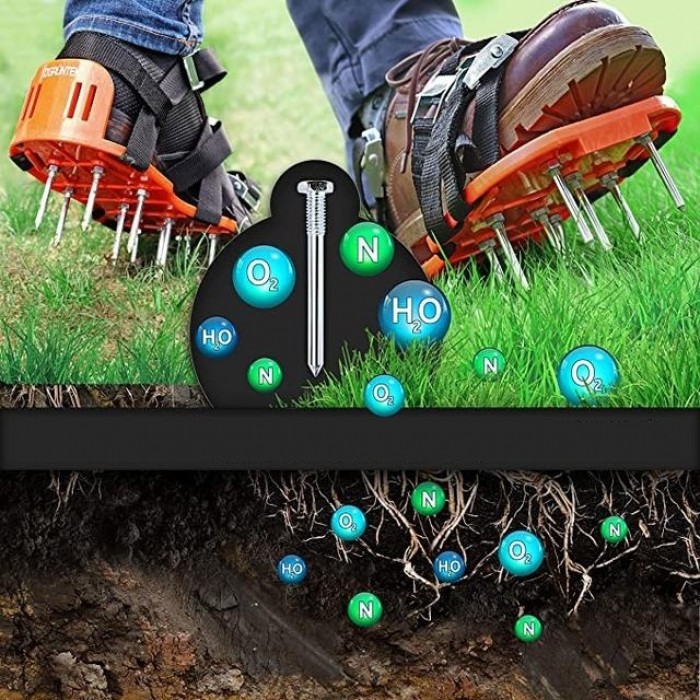 Сандалии-аэраторы Gruntek 300×135 мм (295603300) это — простой и недорогой способ аэрировать газон: надеваете, проходите участок — и воздух, вода и удобрения попадают глубже к корням, трава быстрее восстанавливается и густеет.