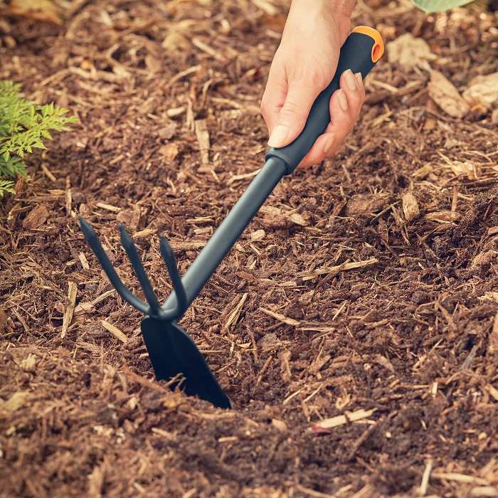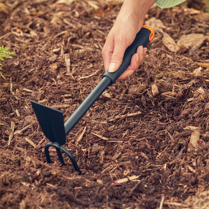 Описание Сапка ручная Fiskars Ergo 7,5 см, три зуба (1027030)