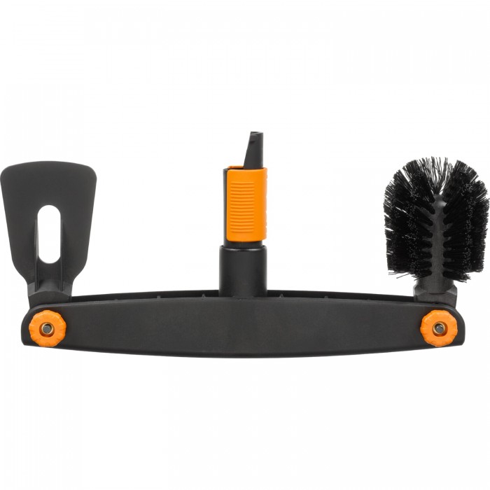 Fiskars 1001414: сухая механическая очистка (щётка + скребок) без водяной линии; плюс — простота, лёгкость и надёжность в системе QuikFit™. (Системы QuikFit™ и combisystem несовместимы.)