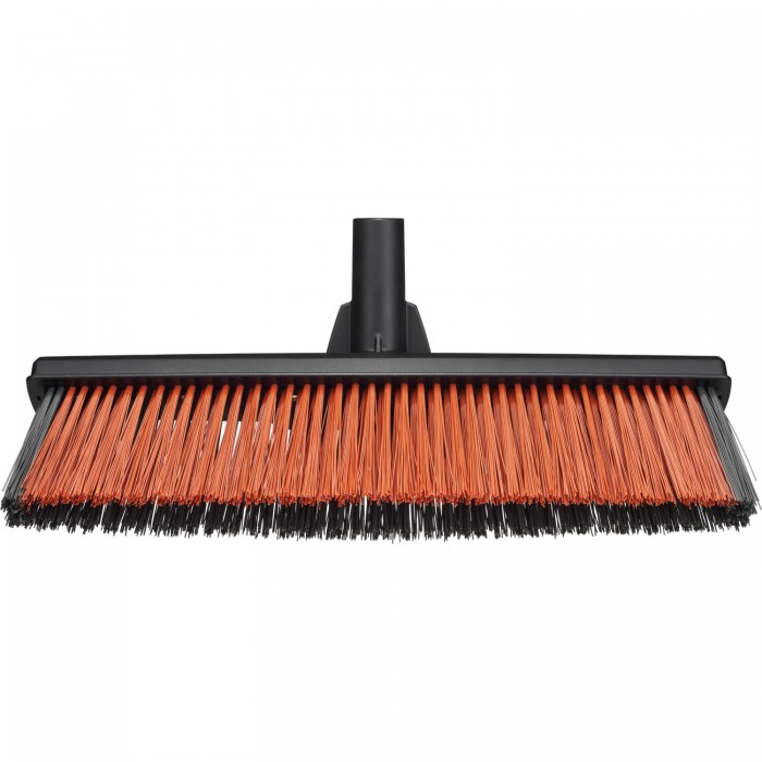 Широкая сменная/запасная голова размера L для быстрой уборки больших площадей (тротуары, террасы, подъезды, гаражи). Комбинированная щетина PowerClean™ (мягкая + жёсткая) эффективно подметает пыль, песок и влажную листву. Сверху предусмотрен скребок для присохшей грязи.