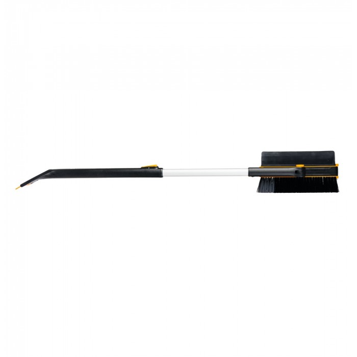 Многофункциональная телескопическая щётка-скребок с поворотной головой: режим классической щётки и снегоотталкивателя. Щётка 26 см (сменная 1078498), скребок 9 см (сменный 1078610). Длина 96–121 см — удобно работать с крышей и центром лобового на кроссоверах/микровэнах.