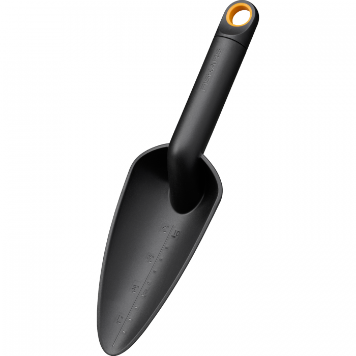 Fiskars Solid™ Planters Trowel (1071899) это - лёгкий и прочный посадочный совок для работы в горшках, контейнерах и на клумбах. Изготовлен из пластика с 65% переработанного сырья и усилен стекловолокном; устойчив к солнцу (UV-стойкий) и рассчитан на ежедневное применение.