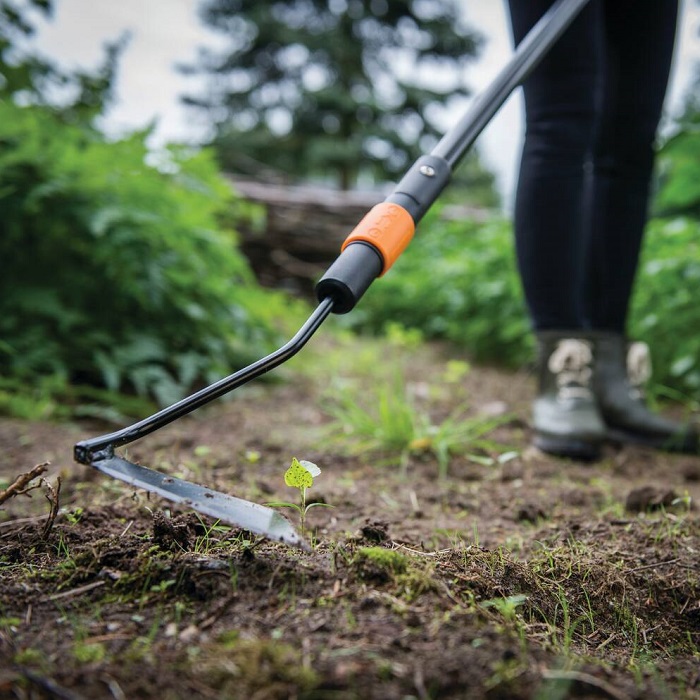 Тяговый рез (pull-hoe): передняя кромка срезает сорняки при движении «на себя».