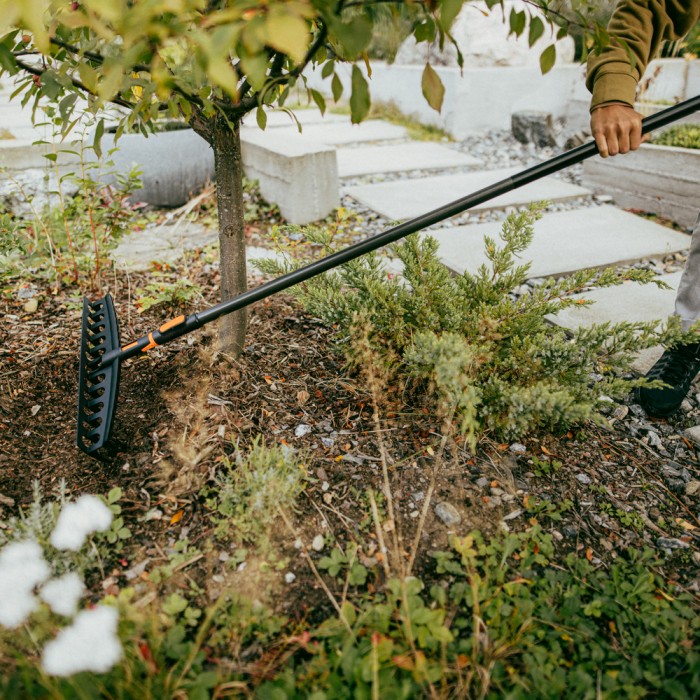 Fiskars Universal Rake OneClick (1080674) це - універсальна граблі-насадка для системи OneClick, створена для прибирання довгої трави й листя та для базових робіт із ґрунтом (розрівнювання, підготовка грядок). Насадка автоматично фіксується на руків’ї, а оптимальний кут зубців допомагає працювати ергономічно й ефективно.