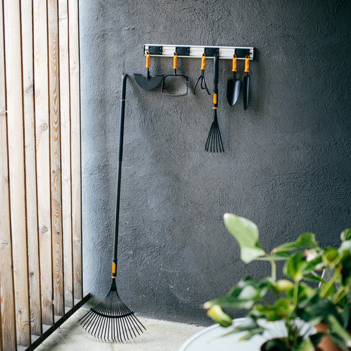 Fiskars OneClick Storage Hanger (1082705) це – настінна система зберігання для садових інструментів з підвісними отворами та насадками OneClick. Дозволяє акуратно організувати граблі, лопати, тяпки, щітки, телескопічні держаки тощо, заощаджуючи місце в гаражі або підсобці.