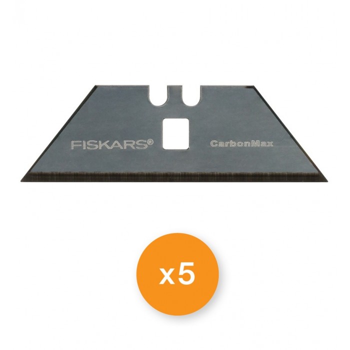 Fiskars PRO CarbonMax™, набір 5 шт. (1027229) - це змінні двоотвірні леза стандартної форми (trapezoid/utility) для точного різання картону, гіпсокартону, лінолеуму, килимових покриттів, пластику та пакувальних матеріалів.