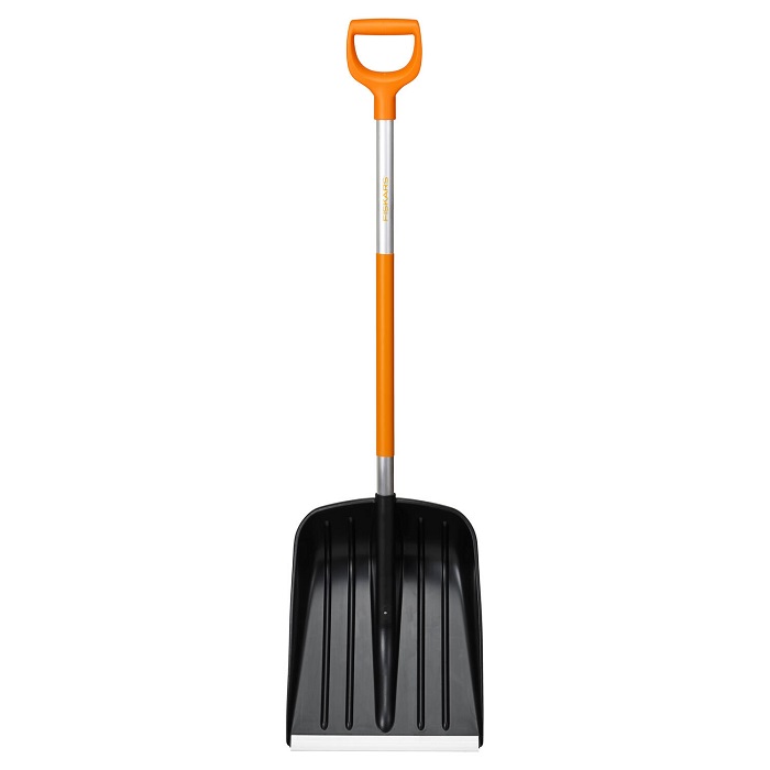 Fiskars SnowXpert™ совок-лопата для снігу, 131 см, чорна (1062827) — інструмент для щоденного прибирання снігу на подвір’ї, під’їзних доріжках, тротуарах і біля автівки. Легка, міцна й «ріжуча» завдяки фірмовій кромці SnowXpert, вона однаково добре працює по пухкому, мокрому та злежаному снігу.