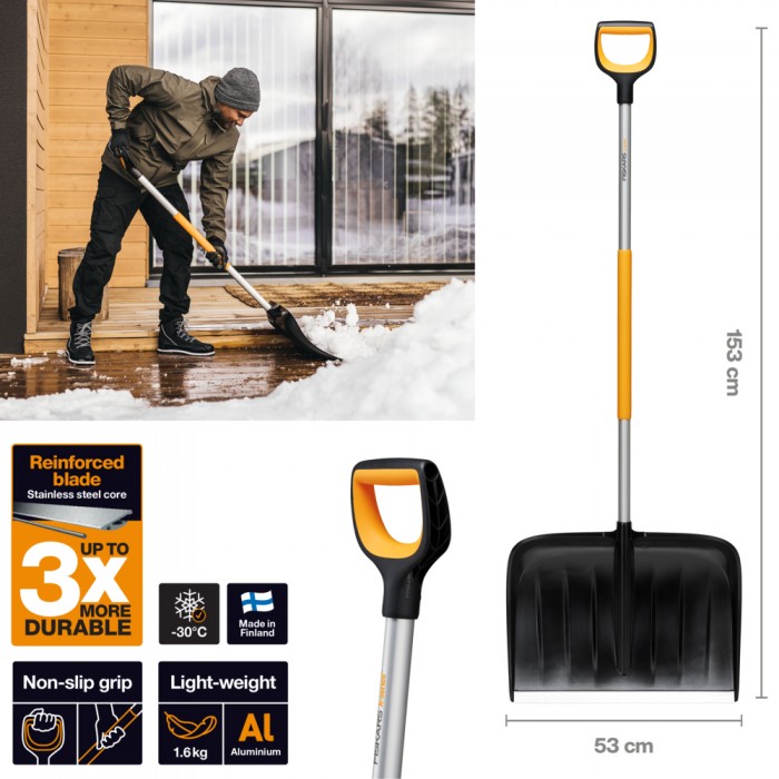 Опис Лопата для прибирання снігу Fiskars X-series™ 53 см, 1.6 кг (1057178)