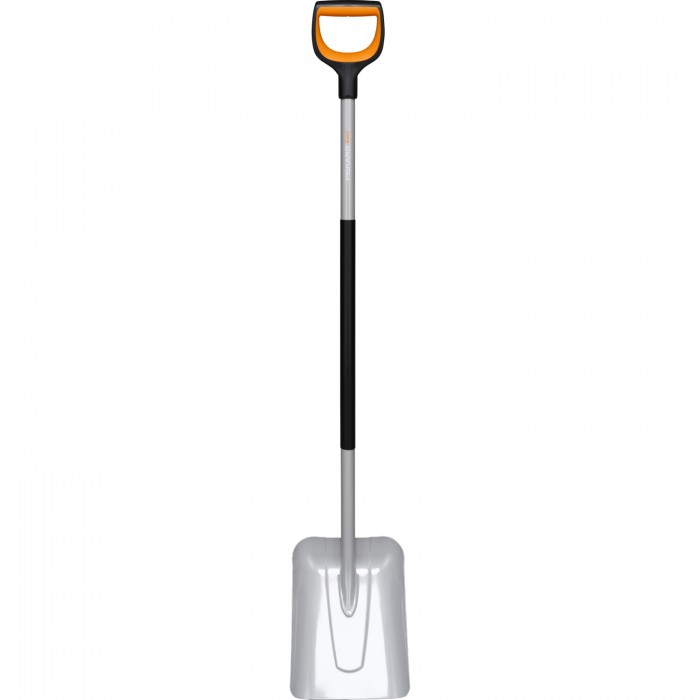Fiskars Xact™ Shovel, лопата для переміщення матеріалів 130 см (1066731) — це продуктивна штикова лопата з широким квадратним полотном для швидкого перенесення ґрунту, піску, щебеню й мульчі без зайвого навантаження на спину. Широке та підняте під кутом полотно з борованої сталі має посилену, зварну посадку на держаку і розмітку розмірів на лезі. Ергономічний вигнутий держак забезпечує природну робочу позу, а D-подібна рукоятка з SoftGrip™ додає контролю в рукавичках і без них.