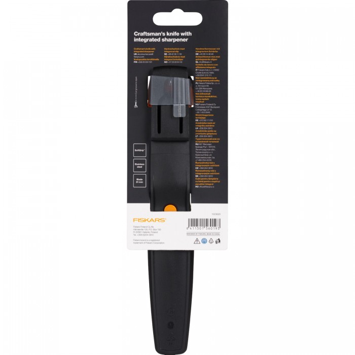 Fiskars Craftsman’s Knife with Sharpener (red), 1023620 — це компактний ніж із укороченим лезом для підвищеної точності, вбудованим точилом у чохлі та ергономічною 3-компонентною (запатентованою) рукояткою. Чохол реверсивний, зручний для правої або лівої руки.