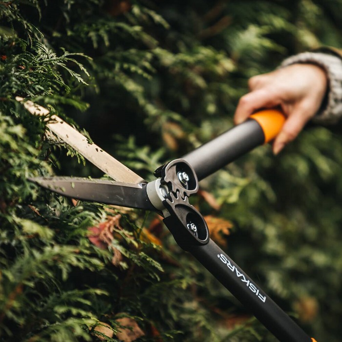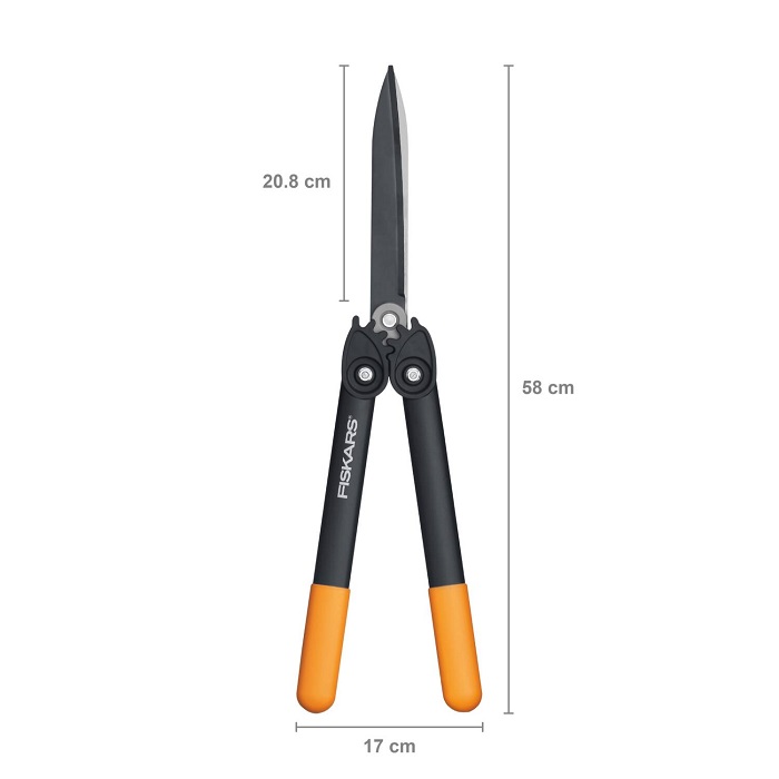 Fiskars PowerGear™ Hedge Shears (HS72) (1000596) це - легкі та потужні ножиці для підрізання живоплотів і кущів. Механізм PowerGear™ дає до 3× більшої різальної сили, а руків’я з FiberComp™ зменшують втому під час тривалої роботи.