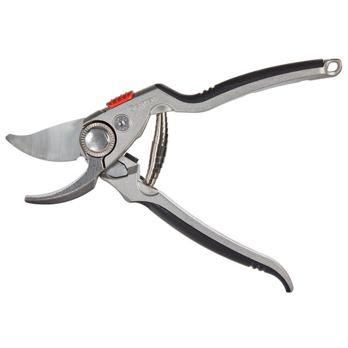 Фіксуються леза одним натисканням верхнього фіксатора, Ви завжди можете надійно зафіксувати леза секатора Premium Bypass 50 для транспортування, або зберігання.