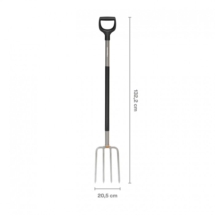 Fiskars Ergonomic™ Garden Fork Grey, 120 см (1070679) — эргономичные садовые вилы для разрыхления почвы и компоста с минимальной нагрузкой на спину и плечи.